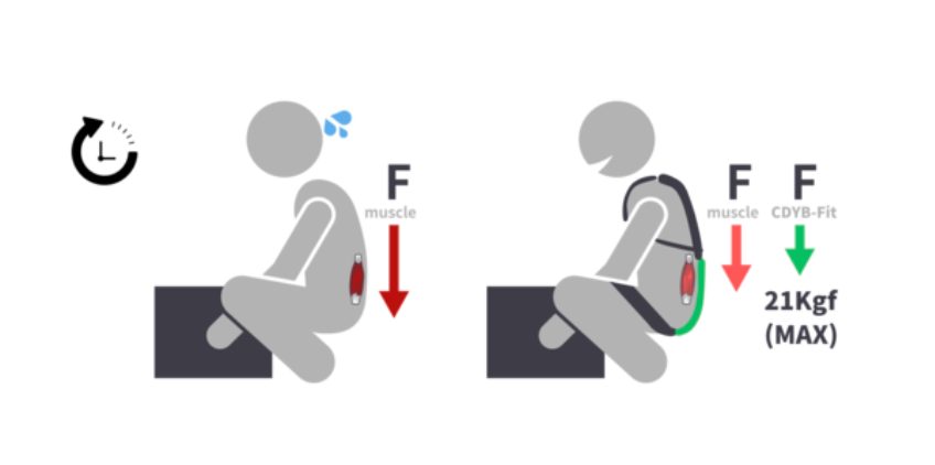 - Embedded elastic frame- the embedded elastic frame can “shape” itself according to users movement and transfer the assisting force effectively.